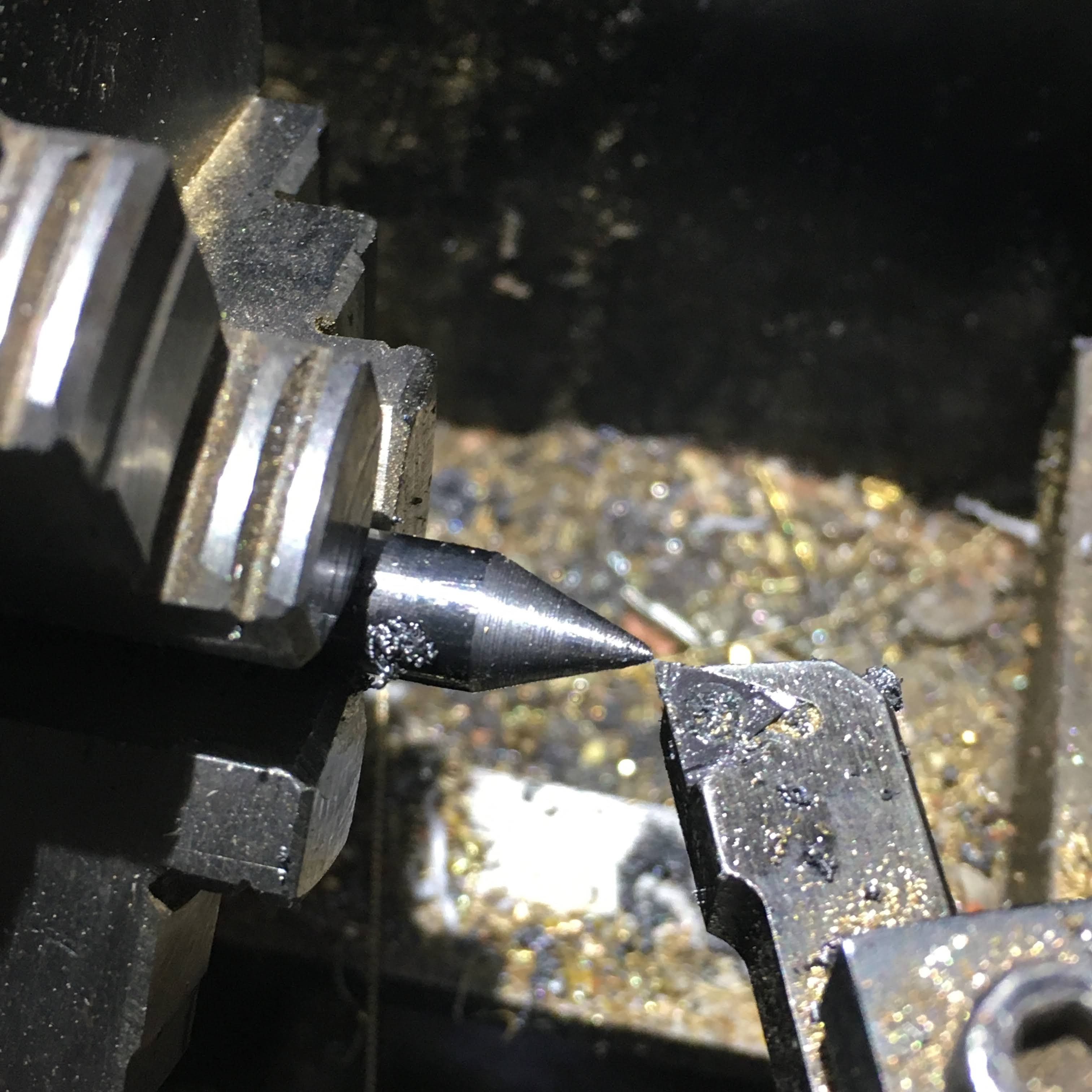 テールストックを送るとセンターが引っ込んでいきます